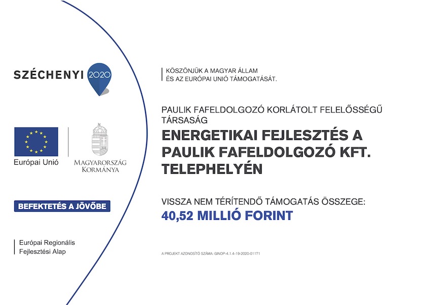projekt címe: GINOP-4.1.4-19-2020-01171 „Energetikai fejlesztés a Paulik Fafeldolgozó Kft. telephelyén”